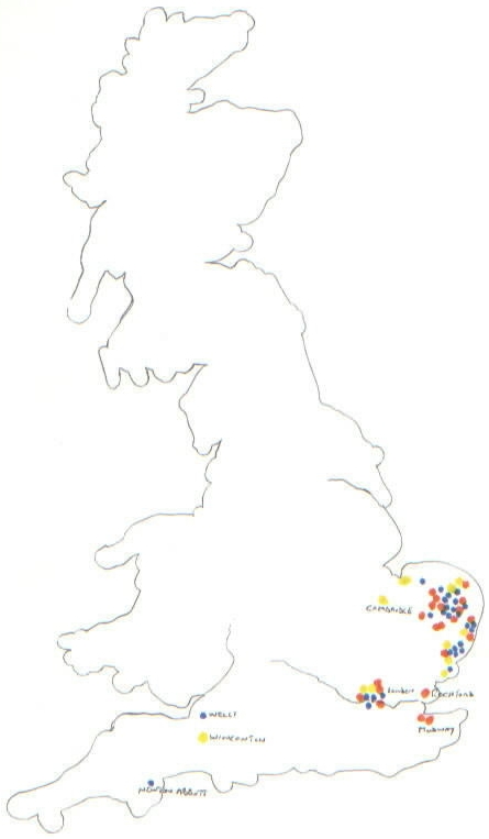 Most of the activity occurs in the area of Norfolk and Suffolk,any doubts about where the Watling's are coming from should be dispelled. The same pattern is continued up until 1870,Watling's outside this area can be counted on the fingers of one hand, after which they explode over the whole country and indeed the world. |
