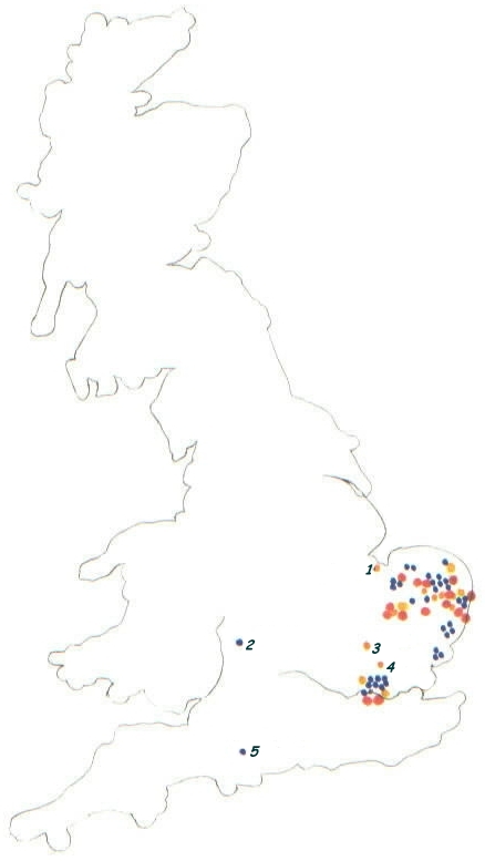 Most of the activity occurs in the area of Norfolk and Suffolk,any doubts about where the Watling's are coming from should be dispelled. The same pattern is continued up until 1870,Watling's outside this area can be counted on the fingers of one hand, after which they explode over the whole country and indeed the world. |