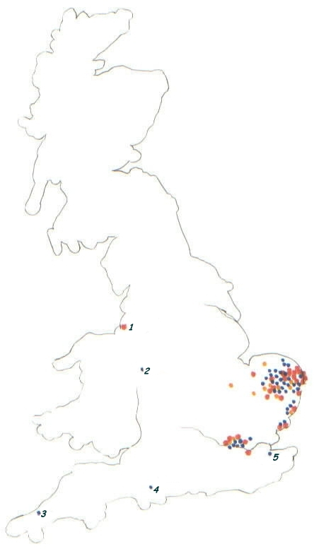 Most of the activity occurs in the area of Norfolk and Suffolk,any doubts about where the Watling's are coming from should be dispelled. The same pattern is continued up until 1870,Watling's outside this area can be counted on the fingers of one hand, after which they explode over the whole country and indeed the world. |