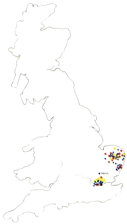 Most of the activity occurs in the area of Norfolk and Suffolk,any doubts about where the Watling's are coming from should be dispelled. The same pattern is continued up until 1870,Watling's outside this area can be counted on the fingers of one hand, after which they explode over the whole country and indeed the world. |
