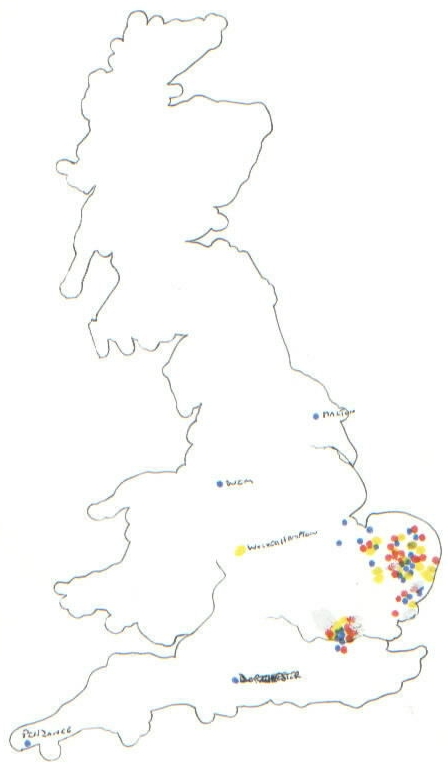 Most of the activity occurs in the area of Norfolk and Suffolk,any doubts about where the Watling's are coming from should be dispelled. The same pattern is continued up until 1870,Watling's outside this area can be counted on the fingers of one hand, after which they explode over the whole country and indeed the world. |