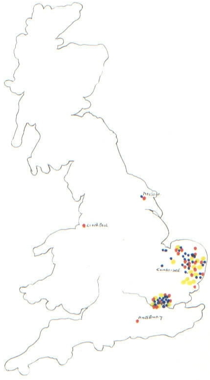 Most of the activity occurs in the area of Norfolk and Suffolk,any doubts about where the Watling's are coming from should be dispelled. The same pattern is continued up until 1870,Watling's outside this area can be counted on the fingers of one hand, after which they explode over the whole country and indeed the world. |