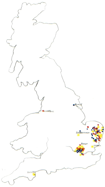 Most of the activity occurs in the area of Norfolk and Suffolk,any doubts about where the Watling's are coming from should be dispelled. The same pattern is continued up until 1870,Watling's outside this area can be counted on the fingers of one hand, after which they explode over the whole country and indeed the world. |