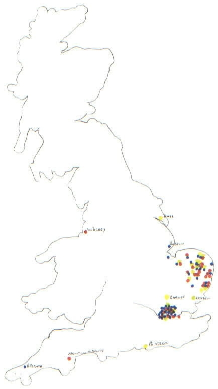 Most of the activity occurs in the area of Norfolk and Suffolk,any doubts about where the Watling's are coming from should be dispelled. The same pattern is continued up until 1870,Watling's outside this area can be counted on the fingers of one hand, after which they explode over the whole country and indeed the world. |
