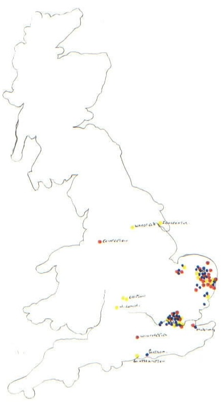 Most of the activity occurs in the area of Norfolk and Suffolk,any doubts about where the Watling's are coming from should be dispelled. The same pattern is continued up until 1870,Watling's outside this area can be counted on the fingers of one hand, after which they explode over the whole country and indeed the world. |