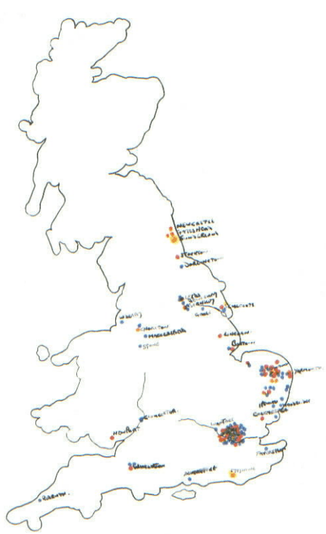 | Newcastle, Gateshead, Sunderland, Stockton, Darlington, Leeds, Dewsbury, Barnsley, West Derby, Goole, Sculcoates, Chorlton, Macclesfield, Stone, Lincoln, Boston,Yarmouth, Ipswich, Woodbridge, Newport, Gloucester, Wantage, Faversham, Redruth, Wincanton, Alverstoke, Steyning. | |