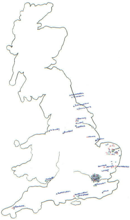 | Lanchester, Durham, Darlington, Easingwold, Bramley, Leeds, West Derby, Rochdale, Sheffield, Newark, Boston, Norwich, Cardiff, Halstead, Ipswich, Woodbridge, Lexden, Redruth, Dorchester, Southampton, Alverstoke, Farnham, Lewes | |
