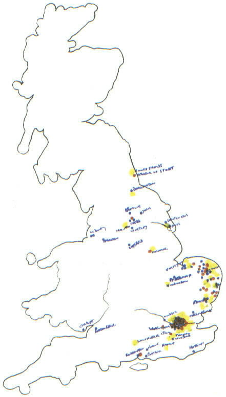 | South Shields. Chester le Street. Darlington. Bramley.York. West Derby. Chorlton. Halifax. Leeds. Wortley. Sculcoates. Hull. Sheffield. Newark. Kings Lynn. Norwich. Peterborough. Huntingdon. Ipswich. Chelmsford. Cardiff. Barton Regis. Windsor. Winchester. Eton.Farnham. Guildford. Southampton. Havant. Portsea. Hastings. | |