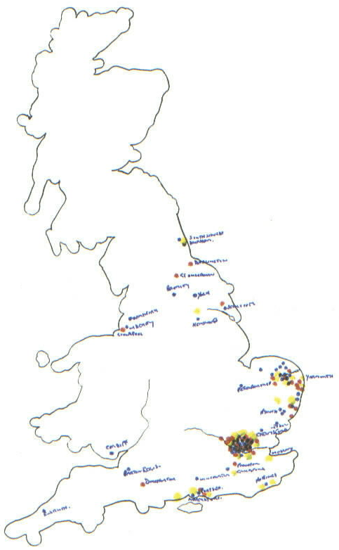 | South Shields. Durham. Darlington. Great Ousebourne. Bramley. York. Ormskirk. West Derby. Liverpool. Hemsworth. Sculcoates. Peterborough. Norwich. Great Yarmouth. Ipswich. Lexden. Chelmsford. Cardiff. Redruth. Barton Regis. Dorchester. Winchester. Alverstoke. Portsea. Farnham. Guildford. Medway. Hastings. | |